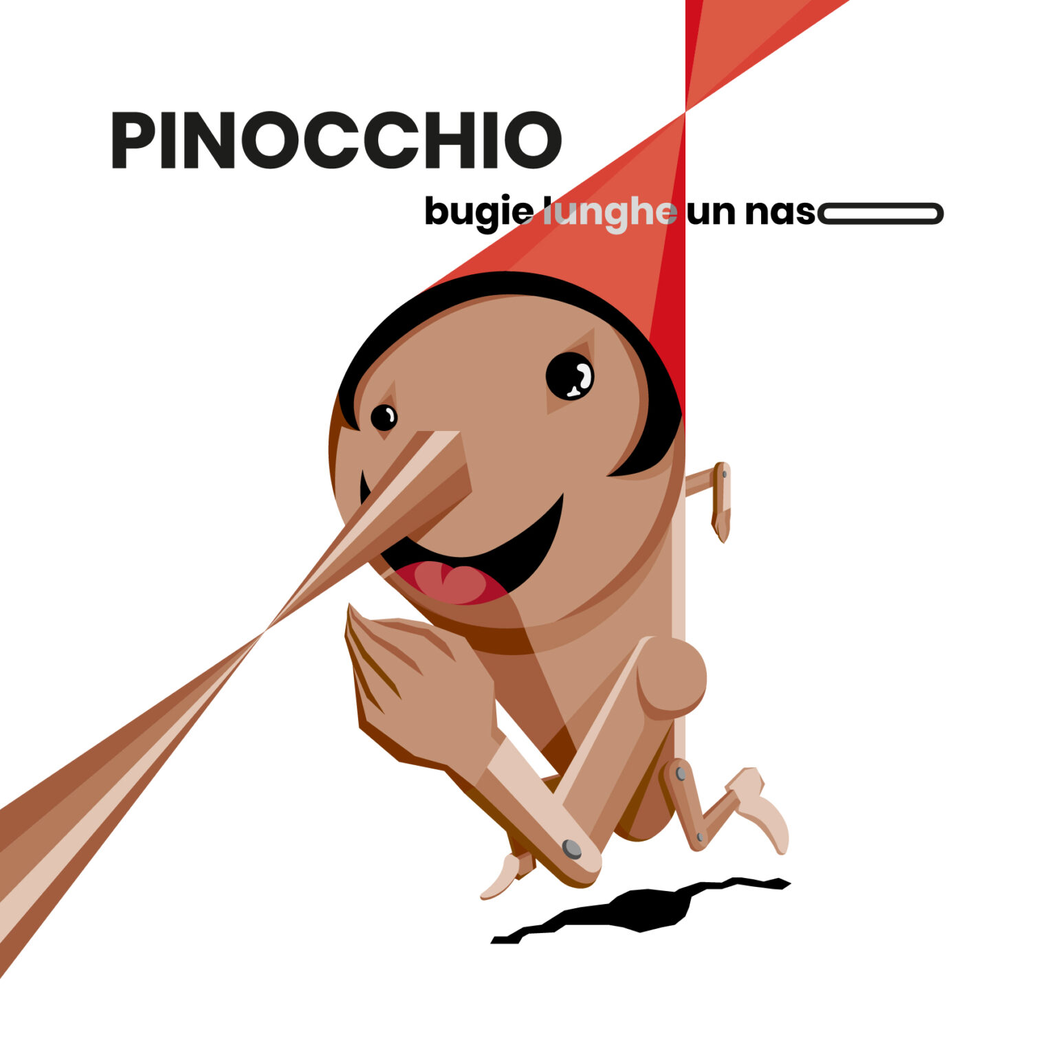 Pinocchio è un’icona, la sua riconoscibilità formale è talmente potente che è possibile identificarlo persino in un albero con una sporgenza appuntita (il suo naso, appunto). Inoltre la sua figura è sempre si intersecano dando vita alle più disparate creazioni, soprattutto di design. L’identità così spiccata del burattino permette di creare una comunicazione coordinata per una mostra a lui dedicata, in grado di trasmettere la peculiarità e l’unicità del personaggio di Pinocchio.